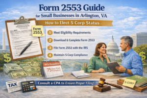 Uncategorized Form 2553 Guide for Small Businesses in Arlington, VA: How to Elect S Corp Status Read More » December 27, 2025